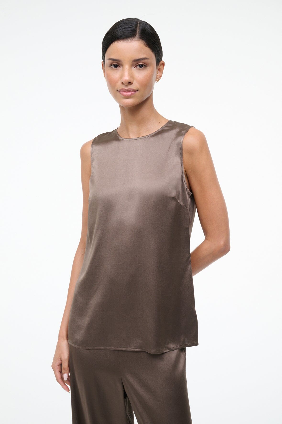 The Bronte Top has been updated in 100% silk – a chic. effortless shift tank that can be paired with our Stroll Silk Pant.