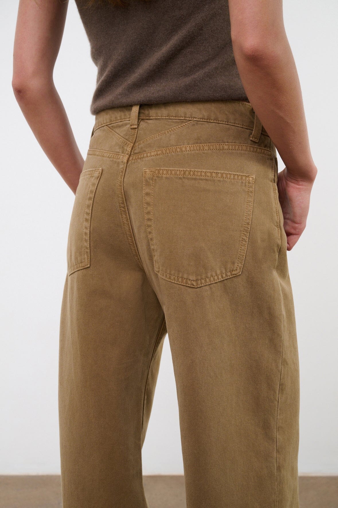 The Gus Jean has a slouchy. relaxed fit with a ’90s-inspired mid rise waist and a slight drop crotch. Cut from rigid denim. it’s designed with an extended inseam for pooling over heels or cuffing. Complete with flattering V-shaped yoke at the back. antique-finish hardware and logo-embroidered zip fly.