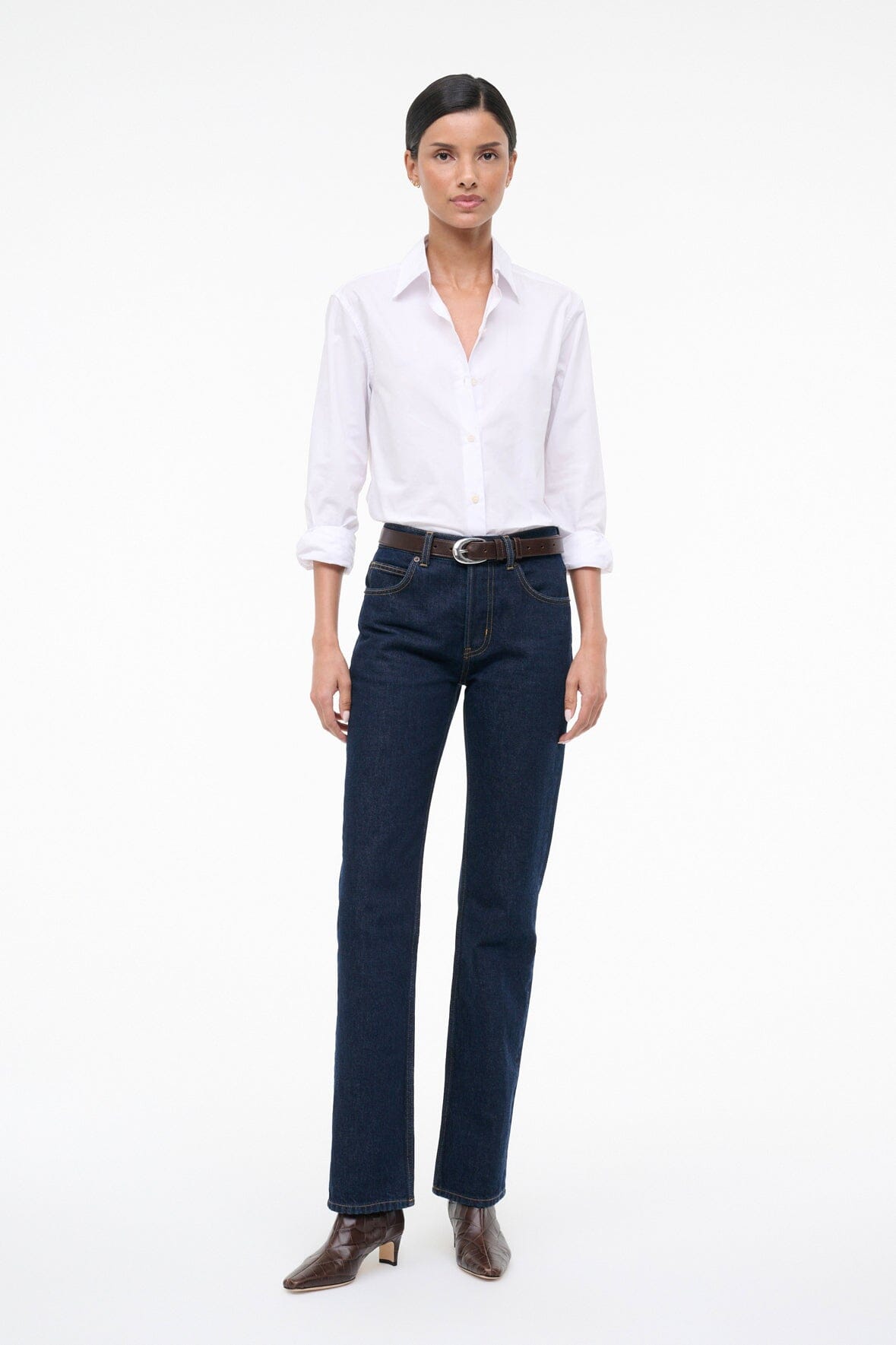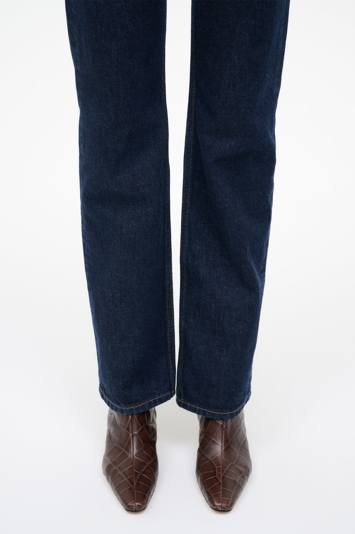 A leather ankle boot. this style features a pointed rectangular toe and a blade heel. The Wally Ankle boot features a side zip closure.